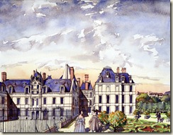 Christian Benilan, architecte des bâtiments de France, propose sur son site une collection étonnante de belles aquarelles sur les châteaux et demeures disparus de l’Ile-de-France. Hommage sincère à l’architecture classique et à ces lieux prestigieux, souvent cités, mais dont on se demande bien à quoi ils pouvaient ressembler. Je pense, par exemple, à ces hôtels qui bordaient les Tuileries avant la construction de la rue de Rivoli ou la fameuse chaumière de Madame Tallien qui se trouvait sur notre avenue Montaigne…